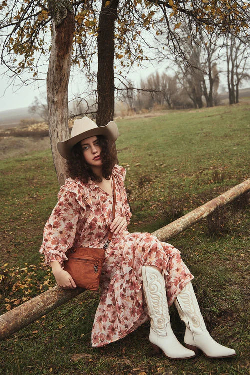 Embrace everyday elegance with this rustic cognac leather crossbody. Featuring edgy gunmetal hardware and thoughtfully placed rivets, this bag balances rugged charm with feminine versatility. The buttery-soft leather develops a beautiful patina over time, while multiple zip compartments keep your essentials secure and organized.