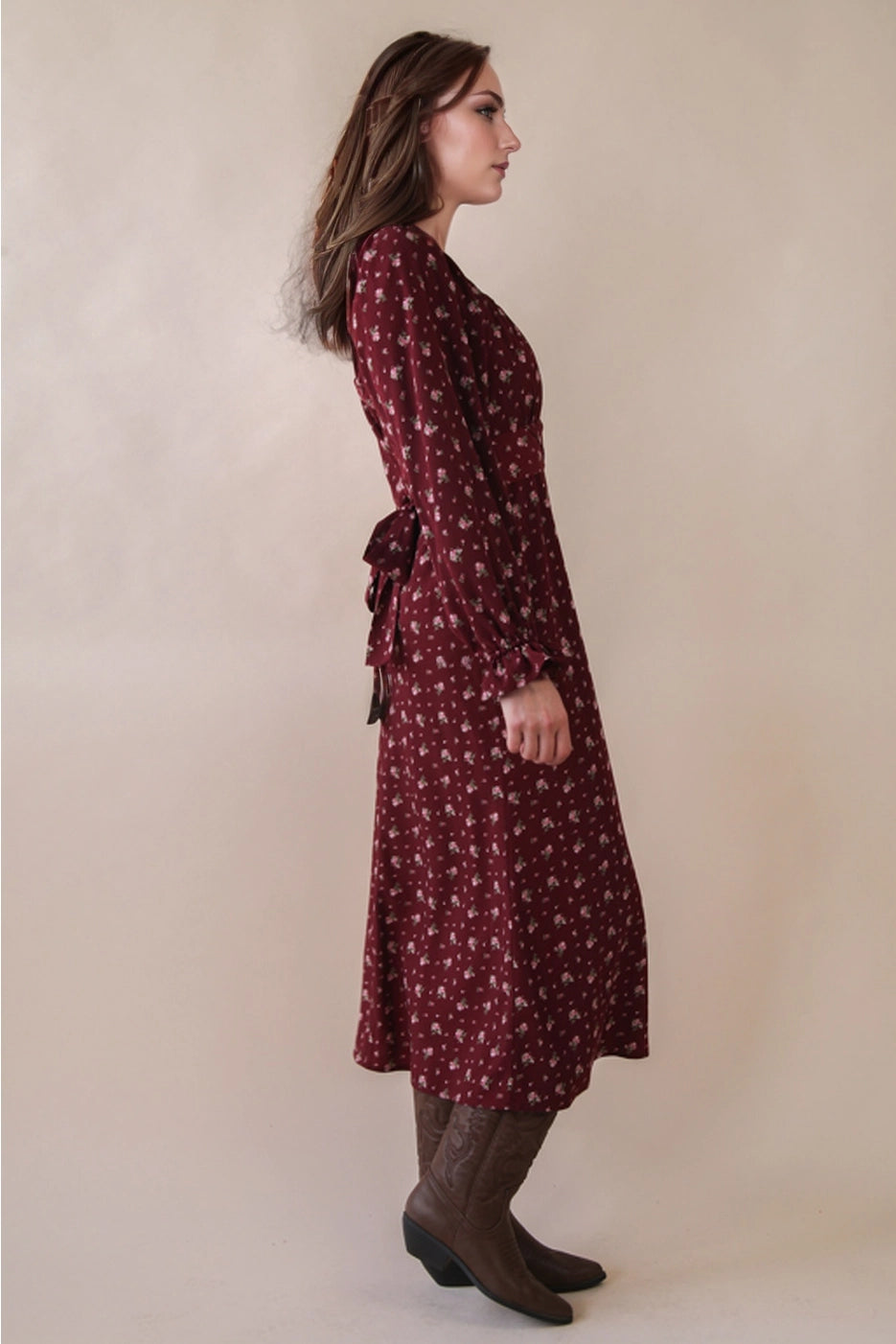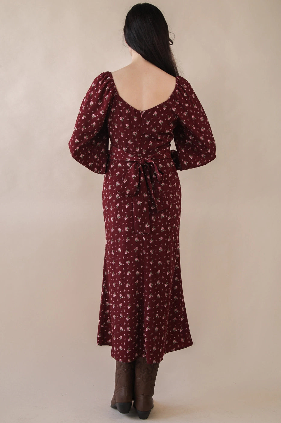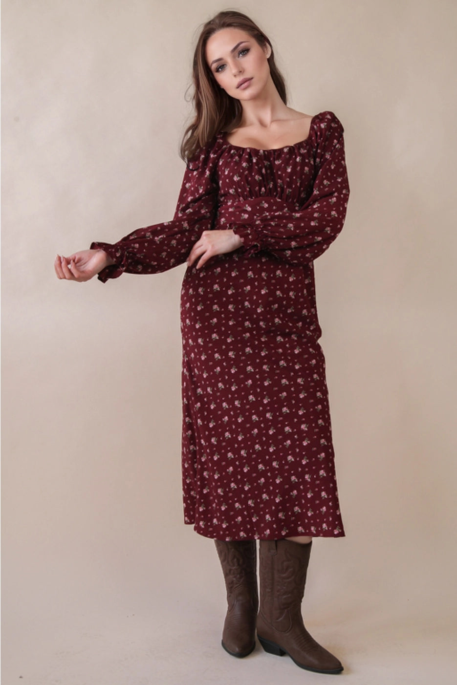 Floral Printed Back Tie Mini Dress - Sweet Heart Neckline - Long Sleeve