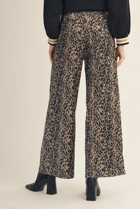 Wide leg leopard pants with pockets, cotton blushed fabric. - Model is 5'8'' and is wearing a Small.