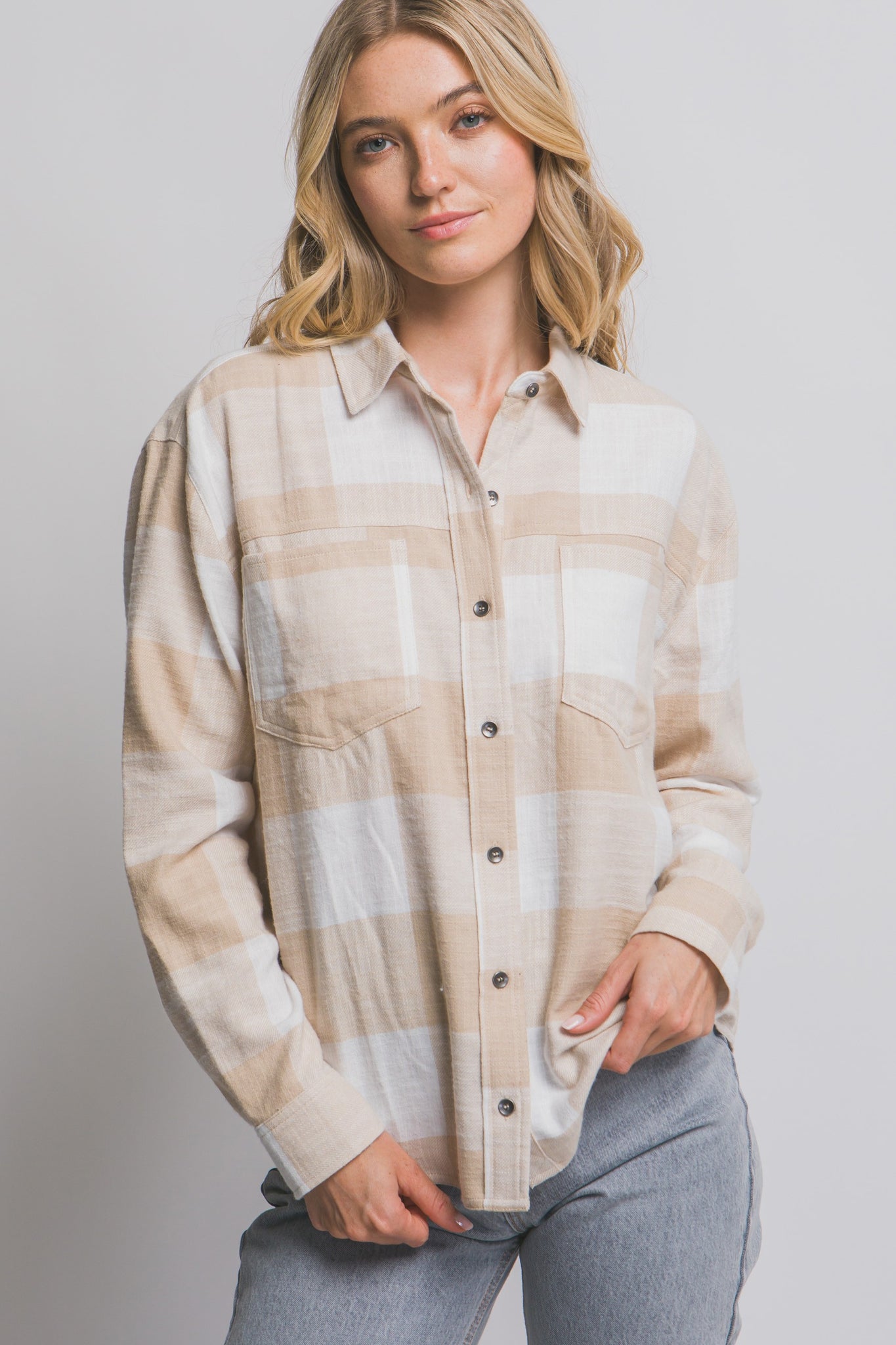 FEATURES: - Spread Collar, Curved Hem, Patch Chest Pockets & Buttoned Cuffs Size + Fit - Model is 5'9" 32C bust, 26" waist, and 36" hips. - Model is Wearing Size Small