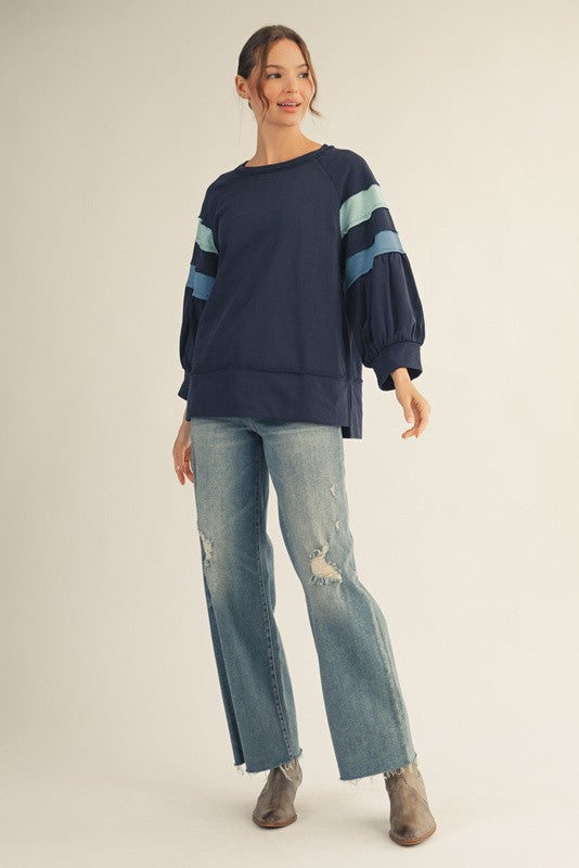 3/4 raglan sleeves casual sweatshirts with color block detail on sleeves,